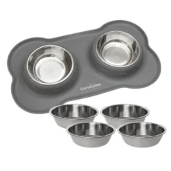 Napfset bestehend aus Silikon Napfunterlage + Edelstahl Näpfe für Hunde und Katzen, Hundenapf / Katzen Napf